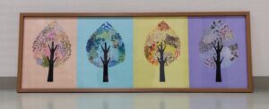 今年は、マスキングテープを木の葉に見立てて作成した春夏秋冬の木